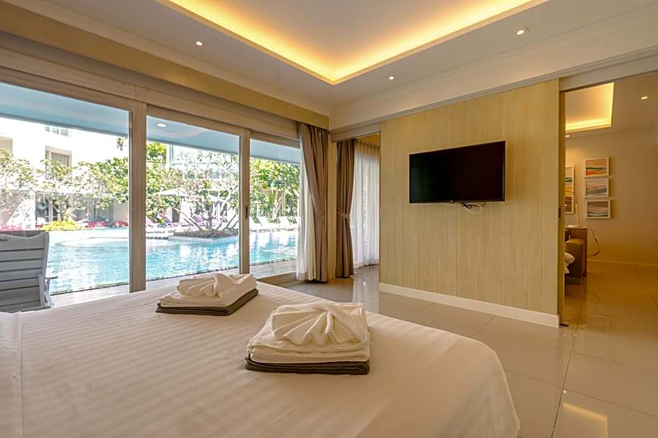Located on the first floor, rooms feature a direct pool access and a separate living room with day bed.